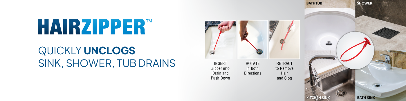 HairZIPPER Clog Remover uses it’s zip-like claws and flexible body to quickly access, unclog and clean sink, shower, tub and any others drains in the house. It’s ergonomic handle allows to do the cleaning easily. Use of the HairZIPPER eliminates the need to use nasty chemicals. Available in red or black colors.