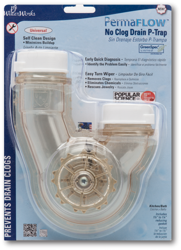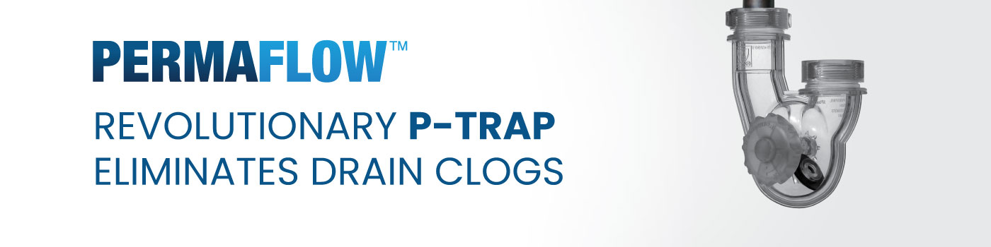 PermaFLOW™ No Clog P-Trap eliminates the build-up of clogs. The patented design self cleans and integrated wiper helps remove build-up eliminating the need for plumbing snakes, dangerous drain cleaners, messy disassembly and associated health, safety and environmental concerns. Universal design easily