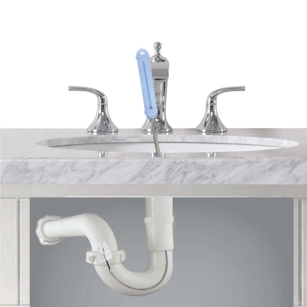 Fix your clog with this Flexible Brush Drain Cleaner O.D.: 6mm, Length: 1 mm, Brush head. The flexible handle helps access hard-to-reach surfaces. This plumbing cleaner is made to remove clogs and other blockages that prevent water from flowing efficiently around drain bends.