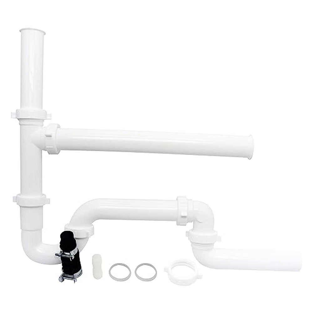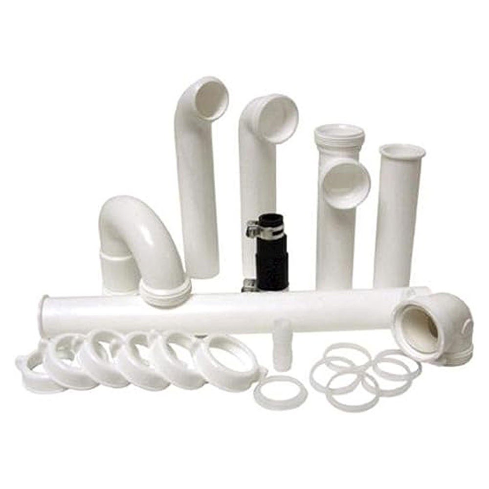 This garbage disposal kit has all components needed to install a garbage disposal. It includes – (1) 1-1/2 inch OD x 6 inch flanged tailpiece, (1) 1-1/2 inch OD x 14 inch flanged tailpiece, (1) 1-1/2 inch OD x 7 inch slip joint drain arm, (1) slip joint end outlet tee, (1) 90 degree elbow, (1) rubber connection boot with barbed Adapter & clamps, (1) 1-1/2 inch OD wall drain trap, (5) 1-1/2 inch I. D. Polyethylene washers and (1) reducing washer.