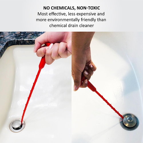 HairZIPPER Clog Remover uses it’s zip-like claws and flexible body to quickly access, unclog and clean sink, shower, tub and any others drains in the house. It’s ergonomic handle allows to do the cleaning easily. Use of the HairZIPPER eliminates the need to use nasty chemicals. Available in red or black colors.