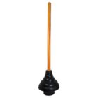 Heavy Duty 6″” Force Cup Toilet Plunger; 21″” Wooden Handle Easily clear a clogged toilet with this durable plunger. This all-angle “”power plunger”” clears clogged toilets in a hurry. It will work on toilets of any size.