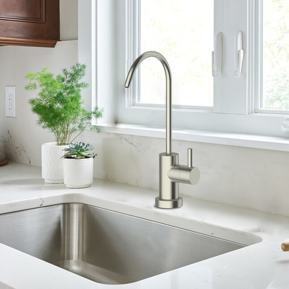 Add the convenience of an on-demand Drinking Cold Water Faucet to your kitchen. Equipped with an easy to operate lever handle, this faucet is finished in warm brushed nickel, providing a lustrous surface