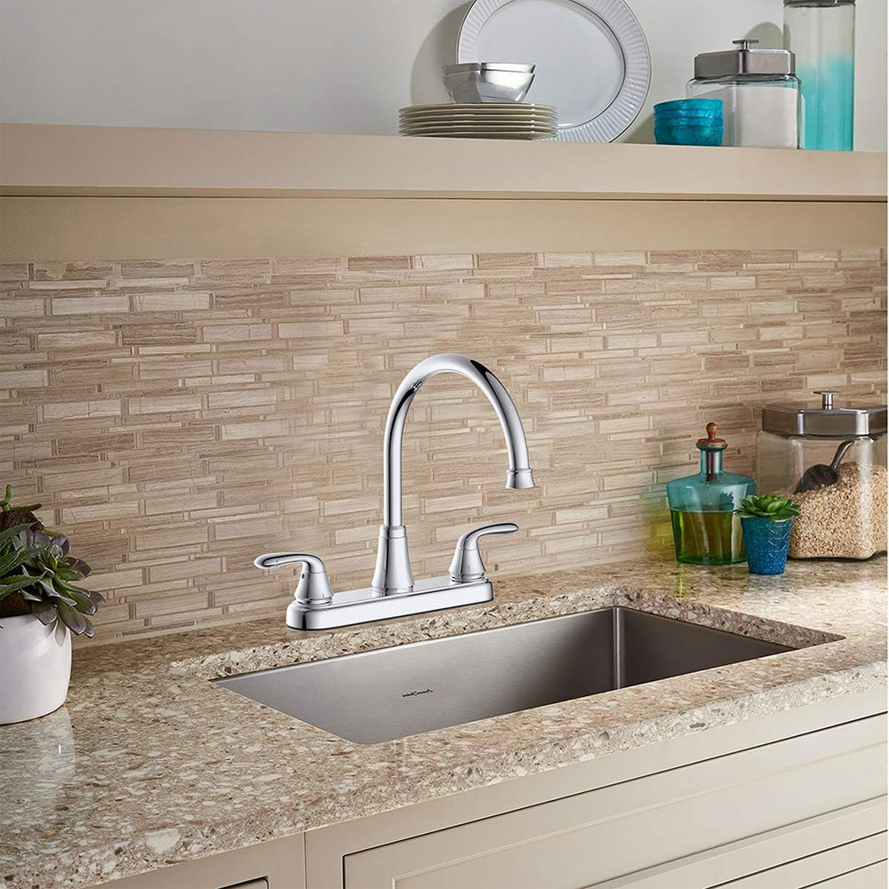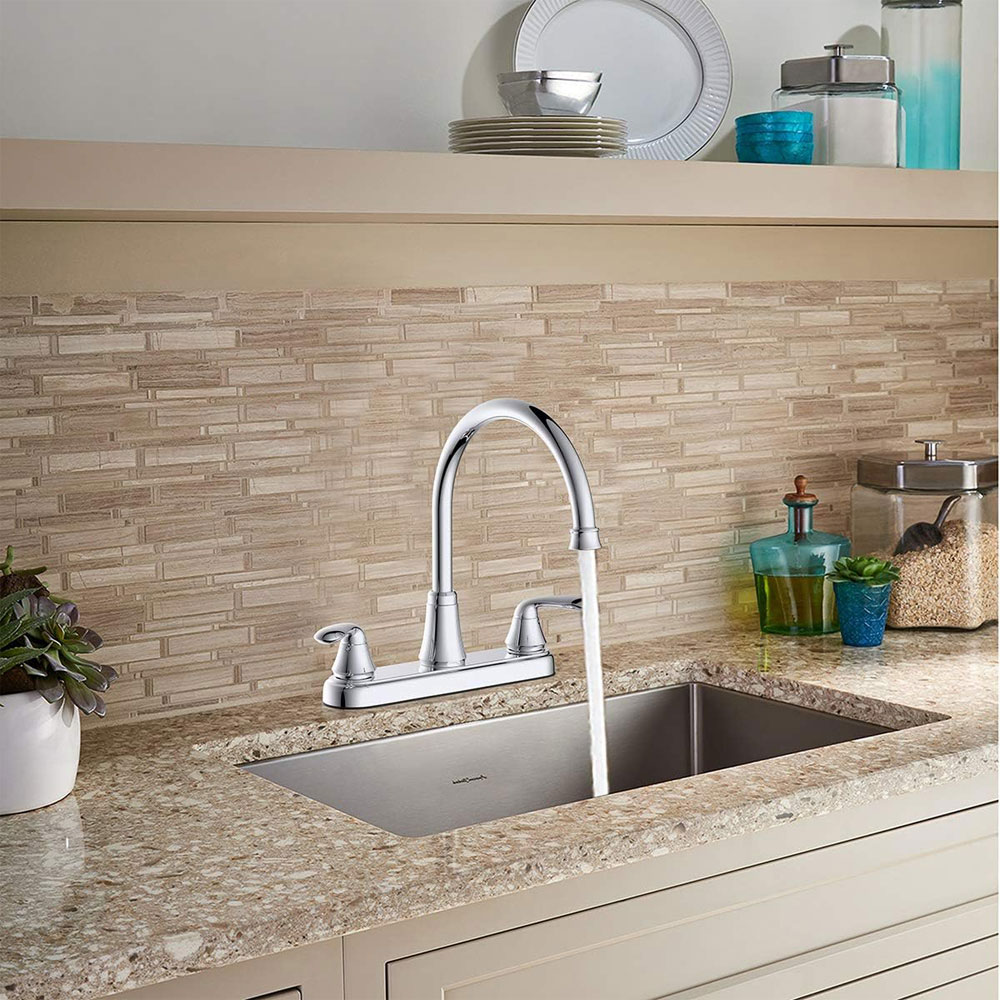 Morganite 8″ Two-Handle Kitchen Faucet with Easy Install QuickNut and Side Sprayer, Chrome