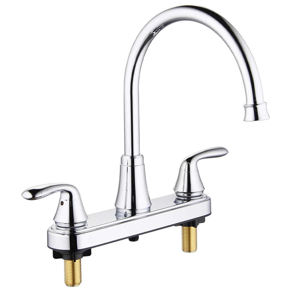 Morganite 8″ Two-Handle Kitchen Faucet with Easy Install QuickNut and Side Sprayer