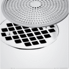 • Fits over shower stall drains without getting in the way