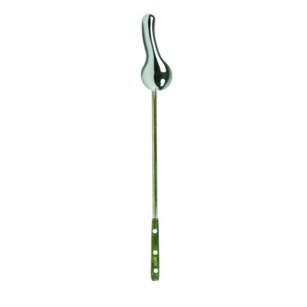 This toilet tank flush lever with arm features a chrome finish.