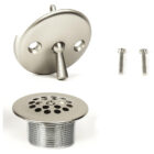 Trip Lever Bathtub Drain Trim Kit includes Grid Strainer, Bathtub Drain shoe, and Trip Lever Overflow Face Plate – all with matching finishes. The kit has all the components to entirely replace your bathtub drain and give it a new look. All components are made with a durable finish. They are perfect for any bathroom improvement plumbing projects.